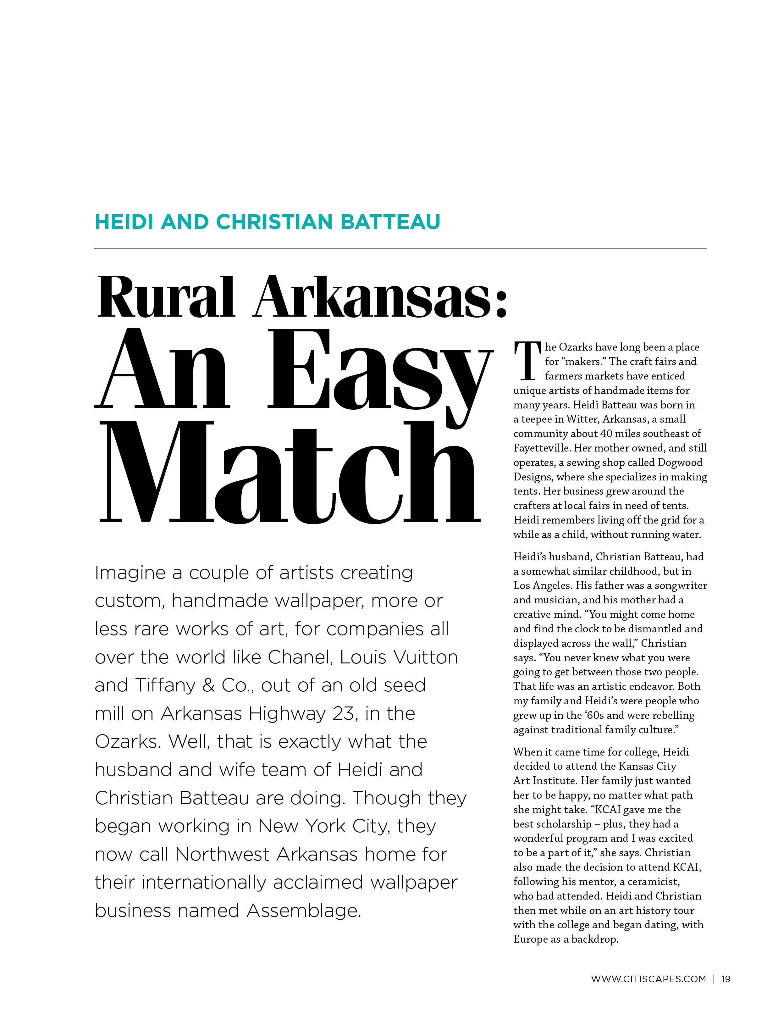 Rural Arkansas: An Easy Match // CitiScapes Mar 12 Written By Christian Batteau Click on the images below to zoom, or download the editorial PDF. View fullsize View fullsize View fullsize View fullsize View fullsize Download Editorial PDF Christian Batteau