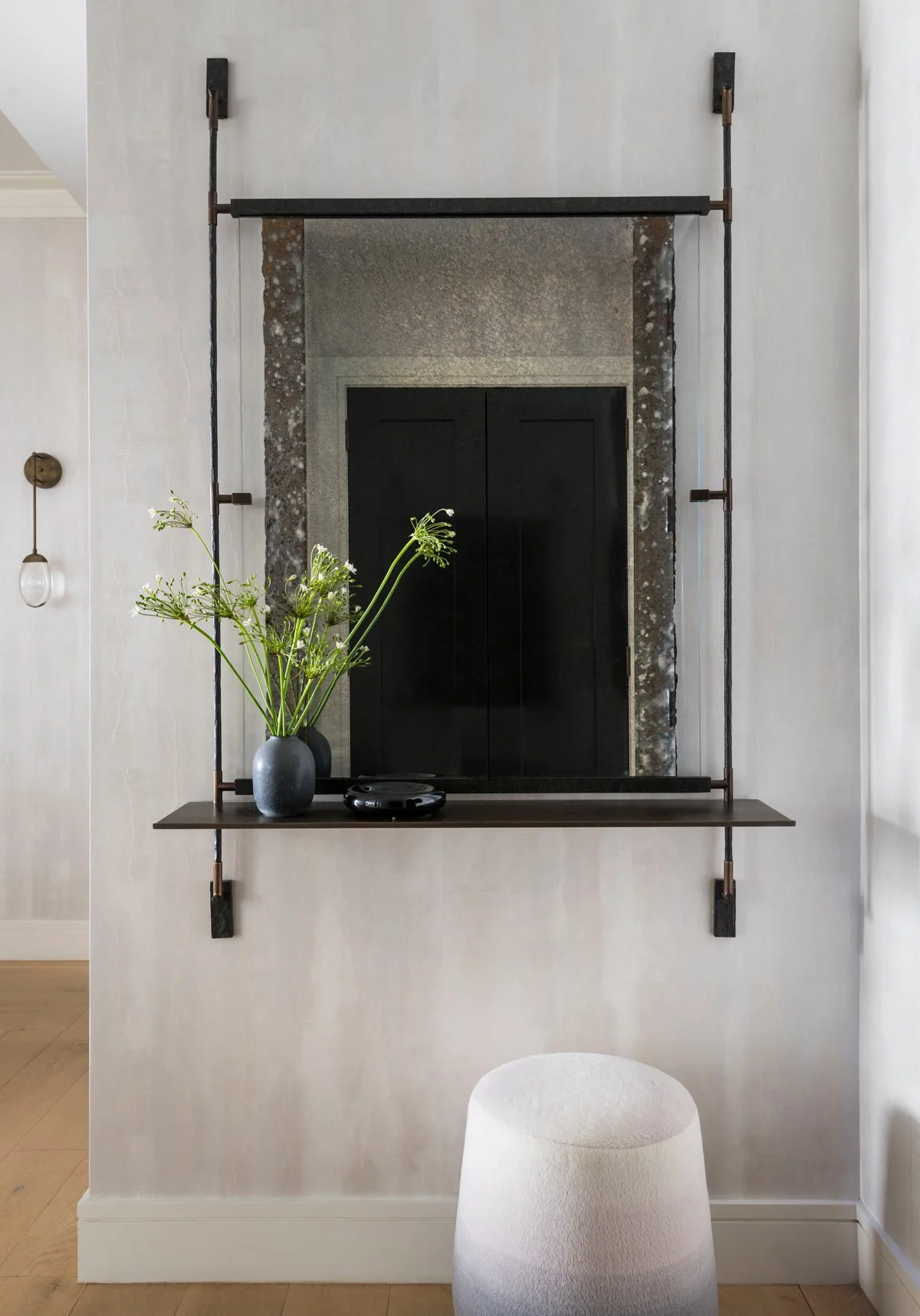 Layers of hand-applied plaster encapsulating micaceous and metallic resins. This lustrous paper is reminiscent of the glowing interior of an abalone shell.