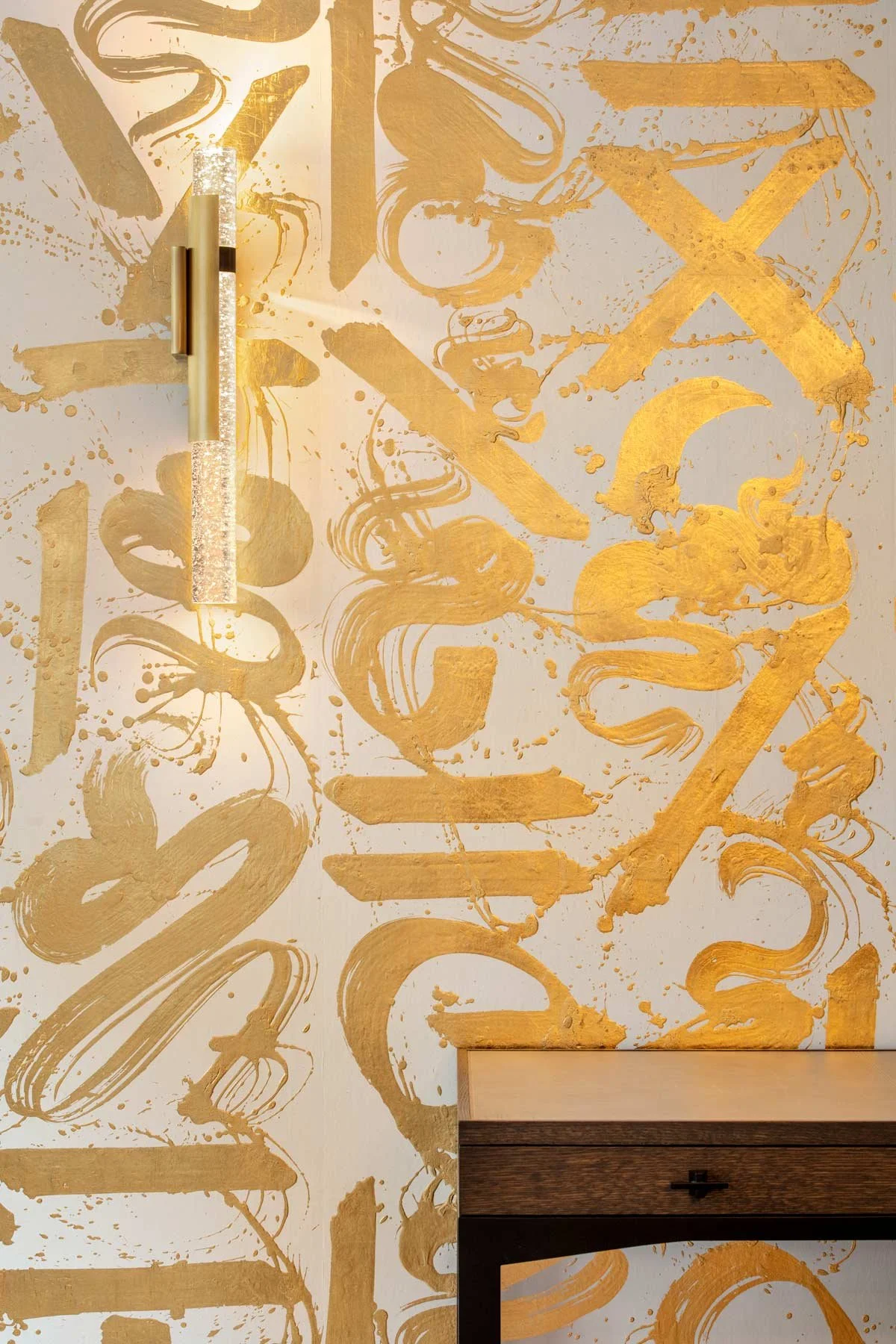 Basho by ASSEMBLAGE is a wallcovering with hand-painted motifs by the studio’s founder Christian Batteau. Each brushstroke is sheathed in hand-applied gold leaf on marble plaster, creating a bold and truly bespoke wallcovering.