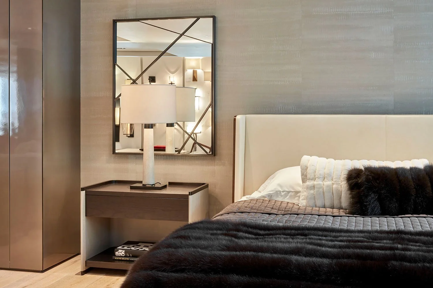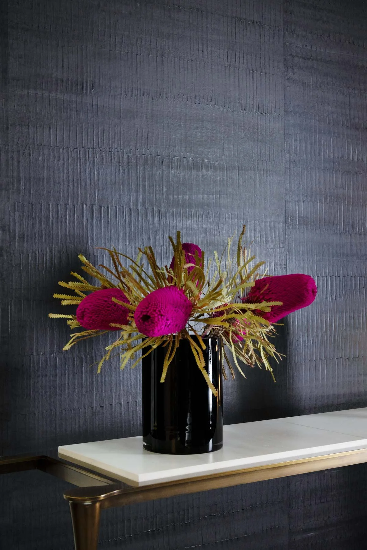Bands of undulating polished plaster finished with beeswax, this paper is reminiscent of waves at sea or reptilian skin.